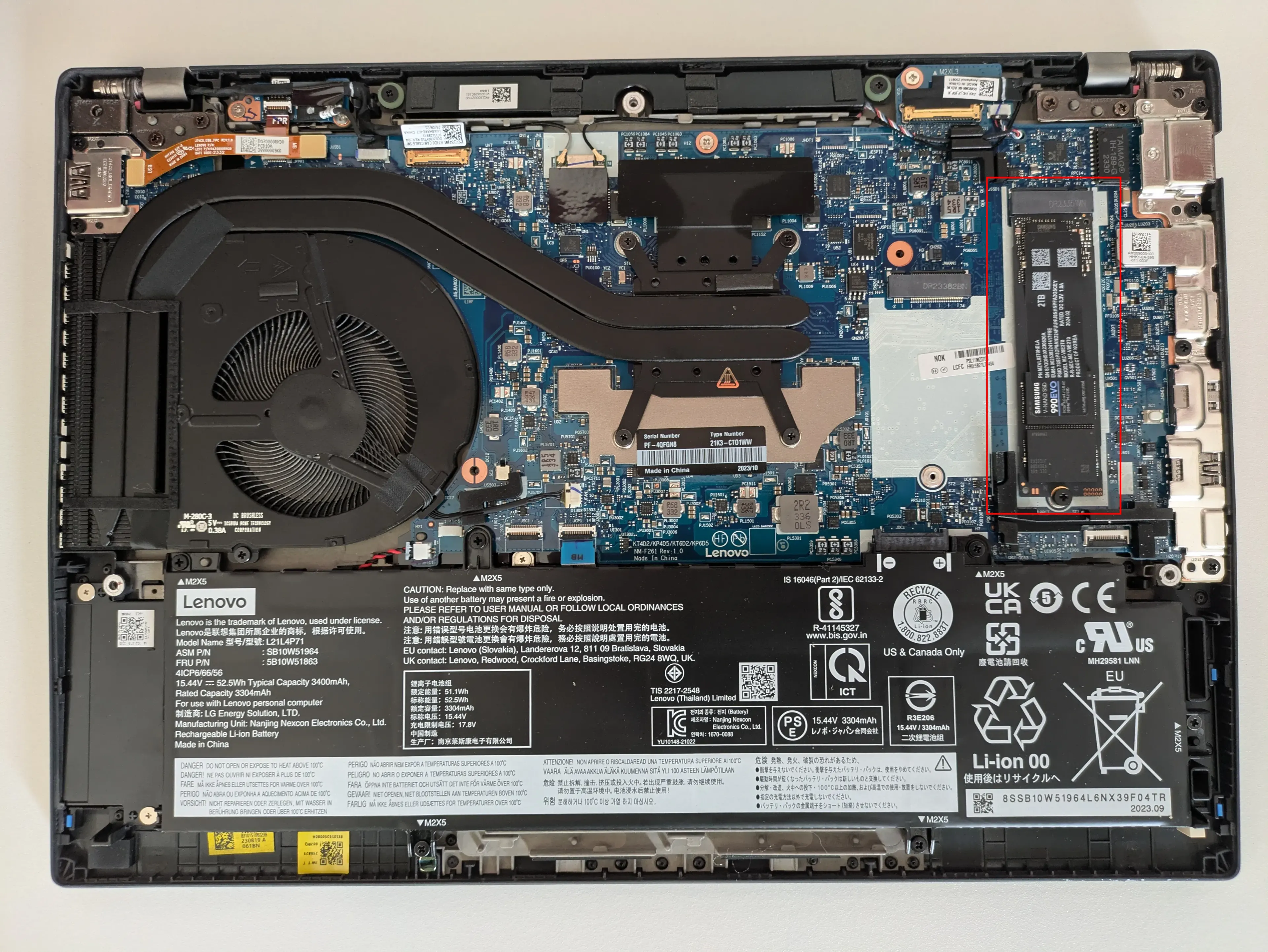 Inside the T14 Gen 4 AMD, space is tight. Lenovo did a good job with CPU cooling and acoustics, but the SSD area itself has no meaningful thermal mass in my configuration. For bursty desktop use this is usually fine. During long backup jobs, it is not.